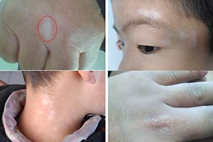 1、发病部位:易发于生殖器及其周围,以及面部、颈部、四肢等暴露部位,白斑数目不定。