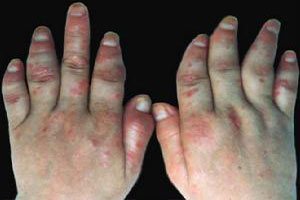 4、导致患者关节损害:关节型银屑病患者除了具有皮肤表现外,还可出现关节肿大疼痛、活动受限、晨僵、有积液或变形等类风湿关节炎的症状。