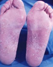 掌跖脓疱病是指局限于掌跖部的慢性复发性疾病,以在红斑的基础上出现周期性的无菌性小脓疱,伴角化、鳞屑为临床特征。好发于50~60岁,女性多见于男性。