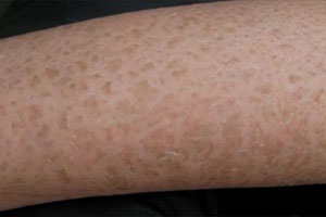 2、常伴瘙痒:鱼鳞病患者一般无自觉症状,入冬常伴瘙痒,夏季少数可因出汗困难感到周身不适,轻者皮肤干燥、粗糙、少量鳞屑。