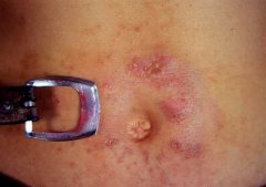 本病为自身敏感性皮炎的特殊型,在发生前患处附近有慢性细菌性感染病灶,临床以病灶周围发红、密集小水疱、水疱、脓疱、 结痂、鳞屑、红疙瘩为特征。发病前有慢性细菌感染灶,排出大量分泌物。