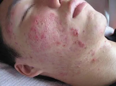 6、萎缩性痤疮:丘疹或脓疱性痤疮破坏腺体而形成凹坑状萎缩性瘢痕。