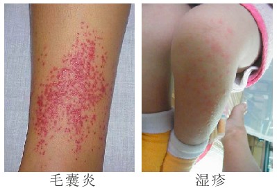 2、湿疹:湿疹是一种常见的表皮及真皮浅层炎症性皮肤病。在临床上有多种表现,在病程发展中红点、红斑、丘疹、水疱、脓疱、糜烂、结痂等各型皮疹症状可循序出现。湿疹症状出现初期,皮肤浸润增厚,逐步变成暗红色及色素沉着;湿疹持久不愈时,皮损纹变粗大,表现干燥而易发生皲裂,常见于手足、胸部、小腿、肘窝等处。