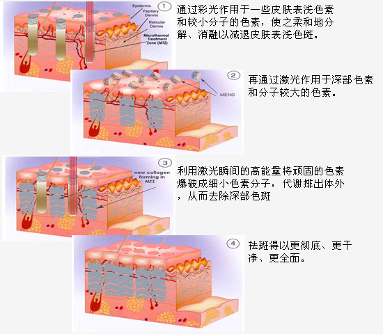 治疗采用特定的强脉冲光穿透皮肤,被组织中色素团及其血管选择吸收,在不破坏正常皮肤的前提下,破坏、分解色素团和色素细胞,从而达到治疗雀斑的目的。高能脉冲复合彩光,可选择性使雀斑内的色素及色素细胞受热、凝固并枯萎,从而达到理想的治疗效果,术后无明显副作用,一般仅需治疗1—2次即可取得理想疗效。配合中医汉方内调,放心治疗各类色斑、雀斑。